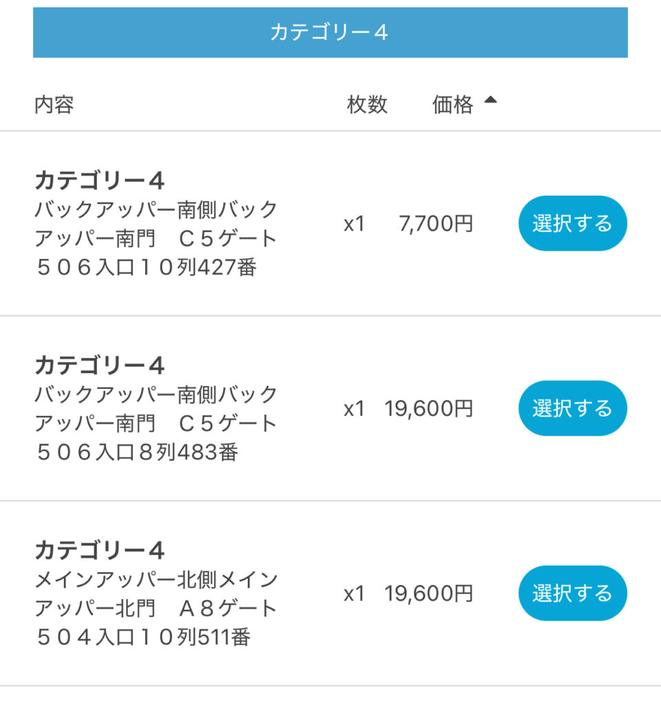 下の画像は試合3日前のリセール販売の画像です。3日前でも買える、、!